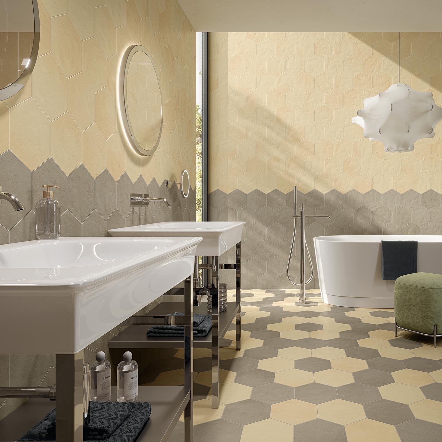 Osmose est né d’une opportunité. Une suggestion née du désir de montrer dans toute sa beauté l’arc-en-ciel de couleurs qui caractérise la série Ojala. La richesse des nuances et la variété du design visent à donner une nouvelle vie à un format classique de l’industrie céramique, l’hexagone. Le résultat est un produit décoratif idéal pour les revêtements de sol et de mur, apportant couleur et personnalité à l’environnement dans lequel il est posé.
